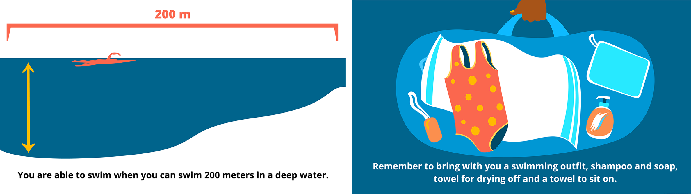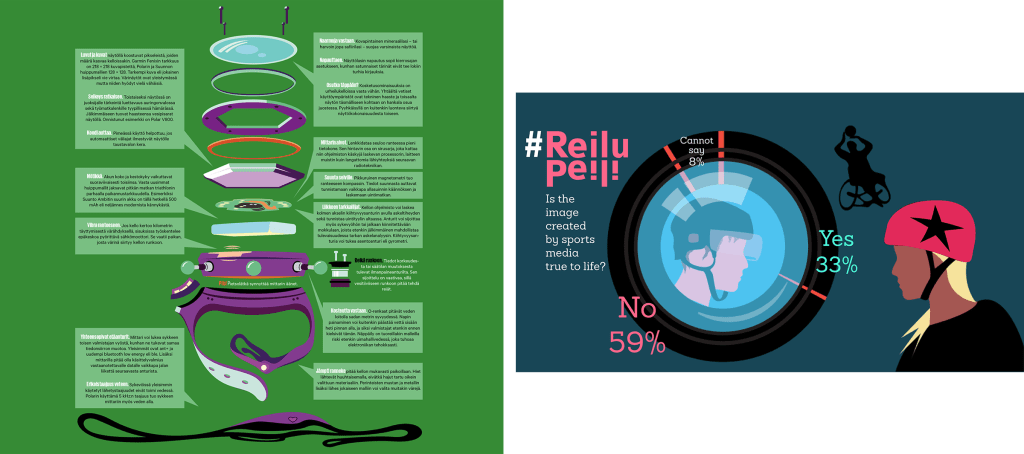 These are scenes from an animation for the Finnish Swimming Teaching and Lifesaving Federation. The intended audience was immigrant families. The text tells exactly the same that you can see in the illustration: the illustration shows exactly what’s told with words.