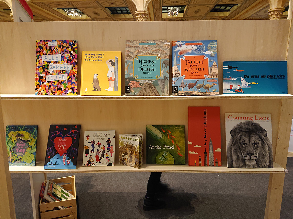 The Beauty that was collected to this one hall was an impressively wide variety of nonfiction. The exhibition nearly knocked me off my feet! First of all, the books on display were all picture books. They really were. I deliberately focus on picture books in my work; still, when we’re talking about data visualization and nonfiction, you find more examples of charts and graphs in illustrated books where text is leading the way. I feel the focus occasionally slips easily out of picture books, even though I find it counterintuitive: Charts and graphs are visual. Shouldn’t they be found primarily in the most visual form of literature, a picture book?