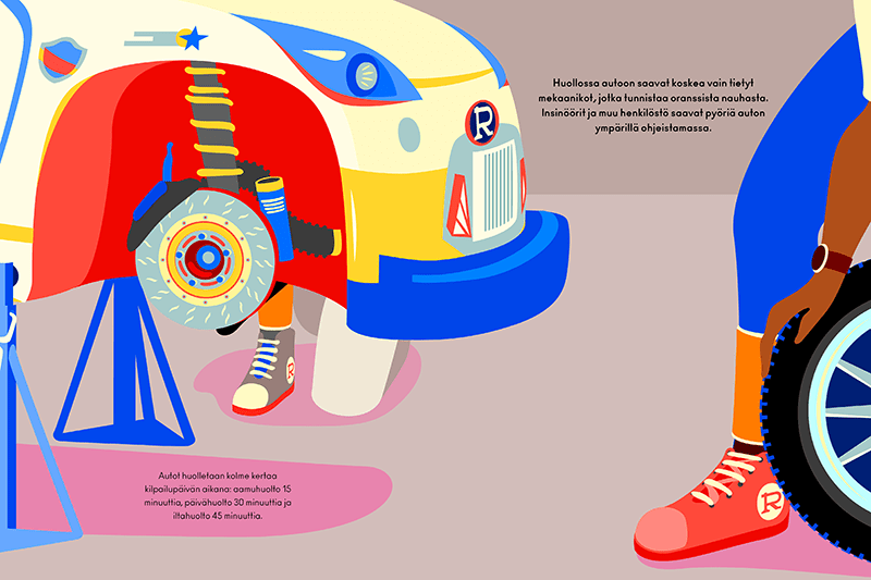 The second nonfiction picture book I illustrated was Rally Team. It came out May 2021. The book got the Merit award in the 3×3 International Illustration Annual No.19 and has been chosen to the collection of the Most Beautiful Books of 2021 in Finland.